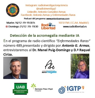 En el programa de radio científico “Enfermedades Raras“, número 489 presentado y dirigido por Antonio G. Armas, el 16/12 en Radio Libertad de 19 a 19:30 horas, se ha entrevistado a: