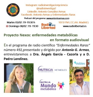 En el programa de radio científico “Enfermedades Raras“, número 492 presentado y dirigido por Antonio G. Armas, el 03/02 en Radio Libertad de 19 a 19:30 horas, se ha entrevistado -