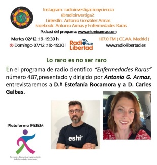 En el programa de radio científico “Enfermedades Raras“, número 487 presentado y dirigido por Antonio G. Armas, el 02/12 en Radio Libertad de 19 a 19:30 horas, se ha entrevistado a